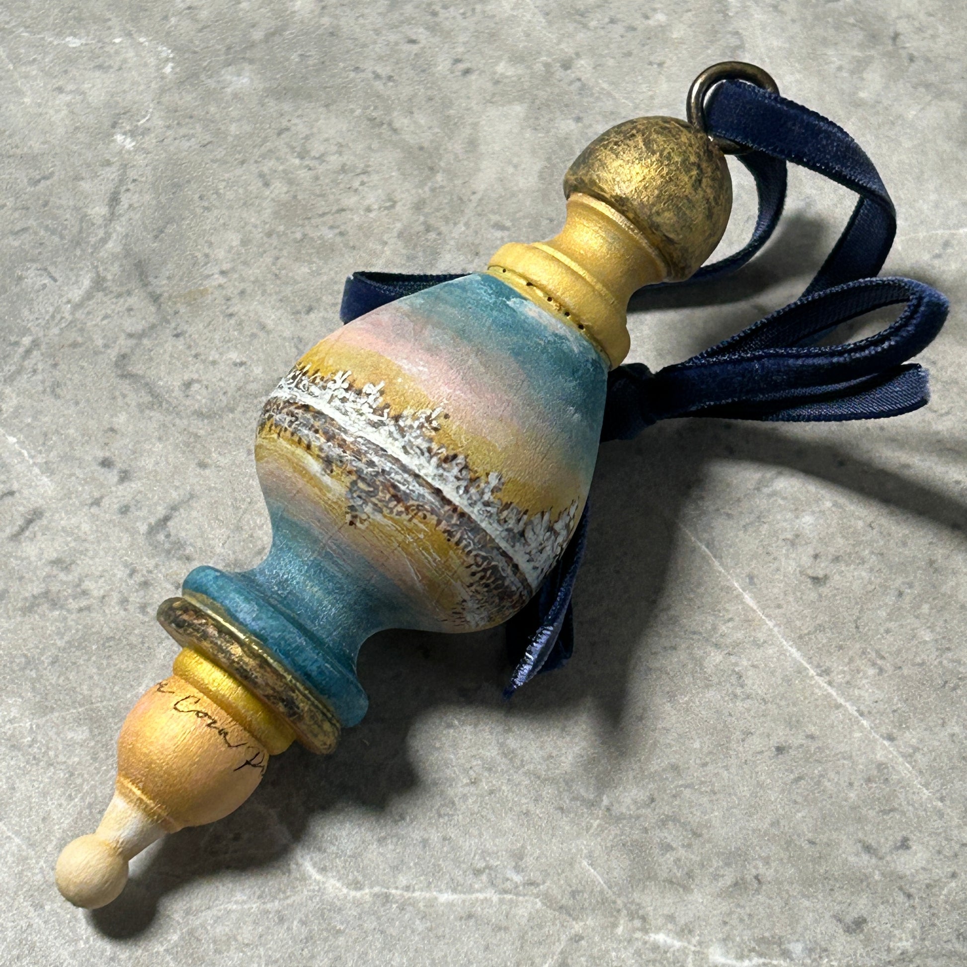 Care Instructions: Each ornament is unique, original and one-of-a-kind. It has been coated with a protective seal that allows it to be enjoyed now and for years to come. Please store the ornaments in the cotton bag that is provided to prevent any damage that may occur during storage.