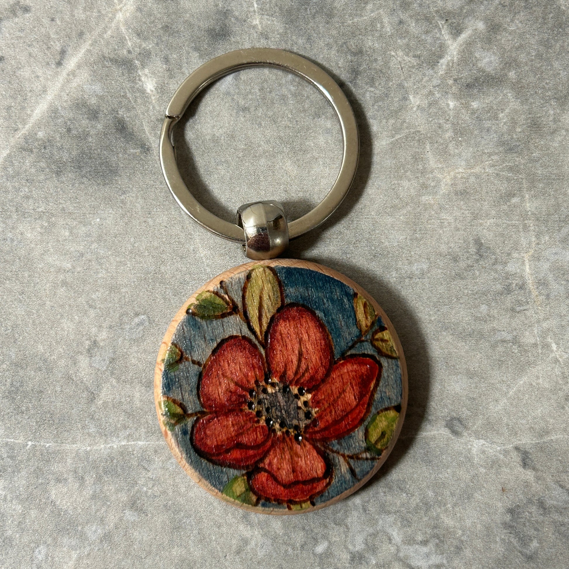 This piece is hand-painted and wood-burned on a sturdy and reliable stainless steel wooden keychain. It's refined design brings a natural element to your key ring and is sure to last. This would make the perfect unique gift for a friend or family member.